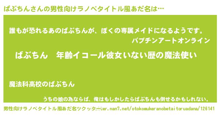 | 女子向けラノベタイトル風あだ名 | 『ばぶちんの玉の輿計画!』 |