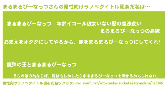| 女子向けラノベタイトル風あだ名 | 『まるまるぴーなっつ恋絵巻』 |