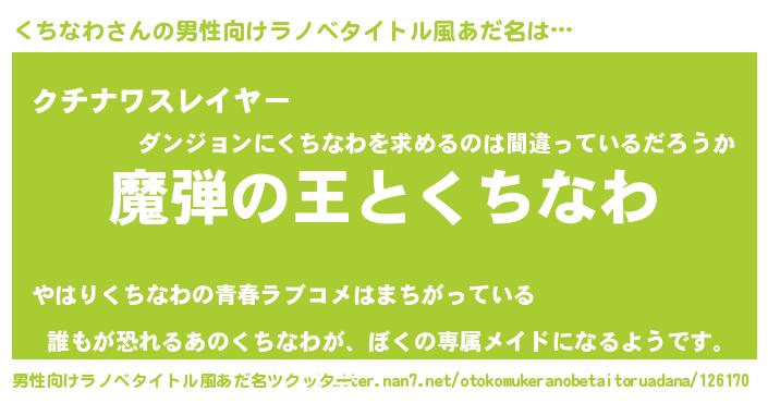 | ヘコむあだ名 | 『くちなわ(笑)』『くちぷりん』 |
