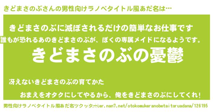 | 女子向けラノベタイトル風あだ名 | 『(仮)きどまさのぶのやんごとなき事情』 |