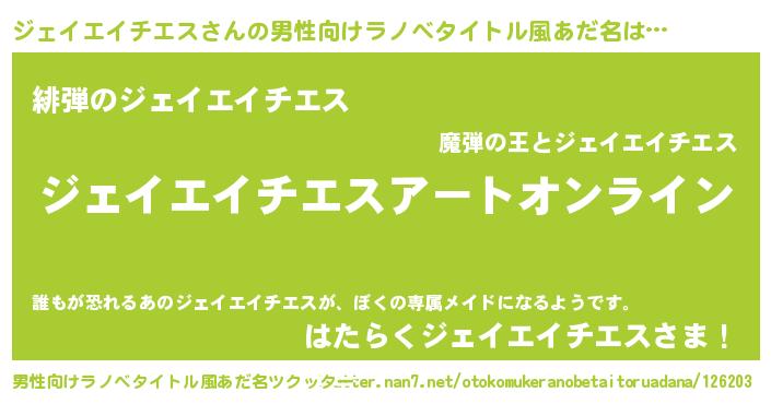 | ヘコむあだ名 | 『ジェふぇ~』『ジェイエイチエス(爆)』 |