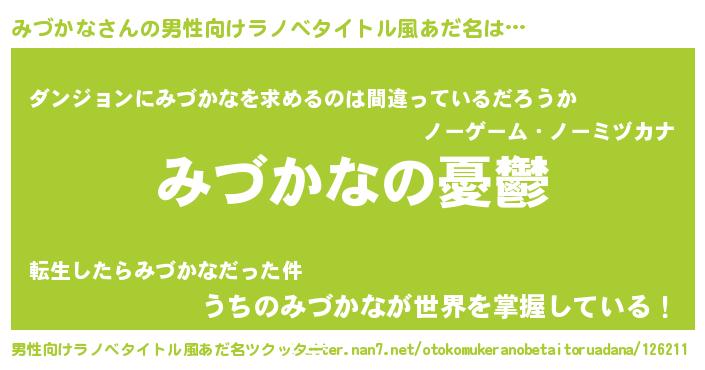 | 女子向けラノベタイトル風あだ名 | 『みづかな姫と円卓の騎士』 |