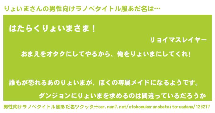 | ヒーロー風カッコイイあだ名 | 『正義の使者りょいま』『暗黒騎士リョ』 |