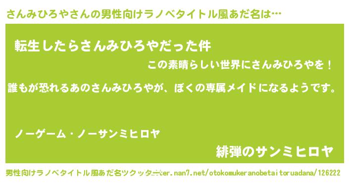 | ヘコむあだ名 | 『さんみひろや(苦笑)』『さん太郎』 |