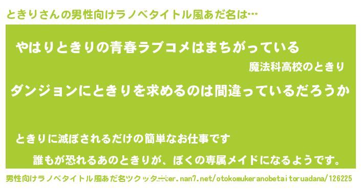 | 意味不明あだ名 | 『とにかく怪しいときり』『自称ときり』 |
