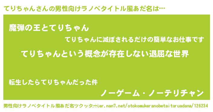 てりちゃんさんの男性向けラノベタイトル風あだ名をツクッター!