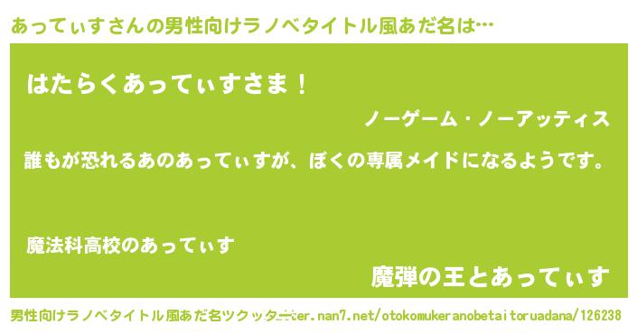 | 女子向けラノベタイトル風あだ名 | 『あってぃすの契約王妃』 |