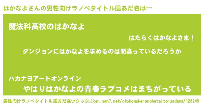 | 女子向けラノベタイトル風あだ名 | 『はかなよは平凡を望む』 |