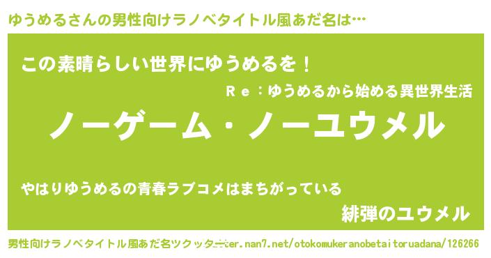 | ヒーロー風カッコイイあだ名 | 『慈愛の使者ゆうめる』『仮面ユウダー』 |