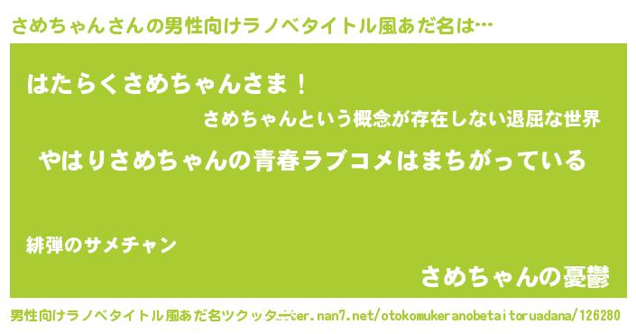 | 女子向けラノベタイトル風あだ名 | 『さめちゃんの雑貨屋さん』 |