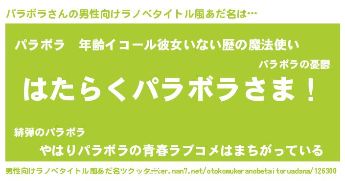 | 恥ずかしいあだ名 | 『パラっちょ』『プリティーパラボラ』 |