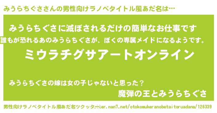 | 女子向けラノベタイトル風あだ名 | 『誰かこのみうらちぐさを説明してください! ~契約から始まるウェディング~』 |