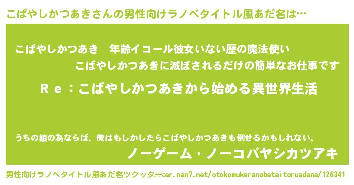 | 女子向けラノベタイトル風あだ名 | 『闇のこばやしかつあき』 |