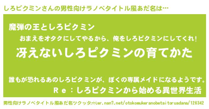 | 胡散臭い通販商品みたいなあだ名 | 『世界中を虜にした100年もののヴィンテージワイン…その名も「しろピクミン」』 |