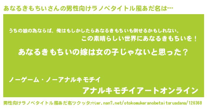 | 女子向けラノベタイトル風あだ名 | 『あなるきもちい様がみてる』 |
