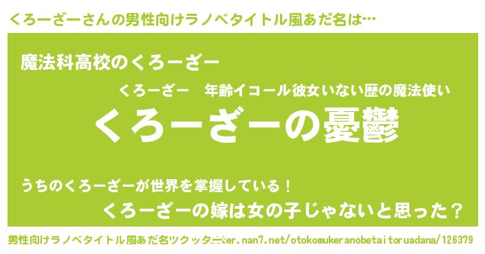 | 胡散臭い通販商品みたいなあだ名 | 『必ず成功するブレスレット…その名も「くろーざー」』 |