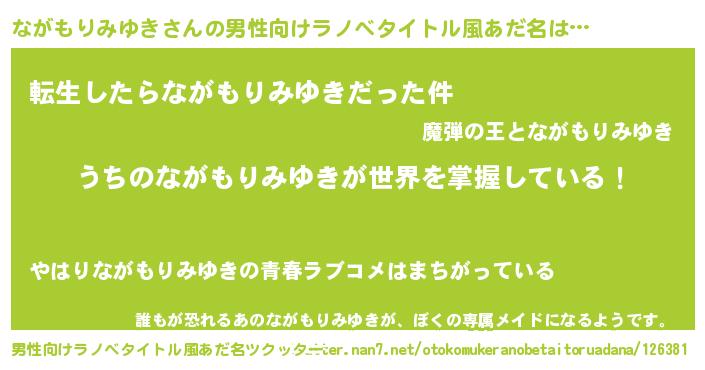 | 女子向けラノベタイトル風あだ名 | 『男装ながもりみゆきの憂鬱な任務』 |