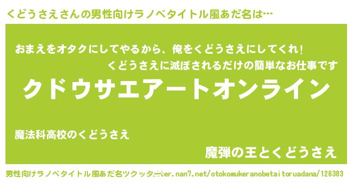 | 女子向けラノベタイトル風あだ名 | 『くどうさえ姫と円卓の騎士』 |