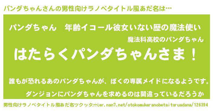 | 胡散臭い通販商品みたいなあだ名 | 『信頼と実績のペンダント…その名も「パンダちゃん」』 |
