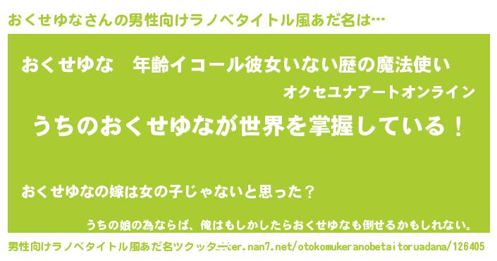 | 胡散臭い通販商品みたいなあだ名 | 『運命の人と巡り会える高級そうな絵画…その名も「おくせゆな」』 |