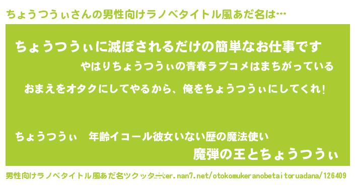 | ヒーロー風カッコイイあだ名 | 『愛の使者ちょうつうぃ』『仮面チョダー』 |