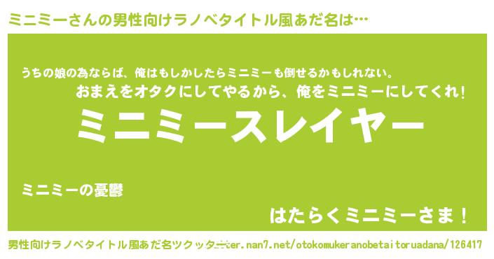 | ヒーロー風カッコイイあだ名 | 『ウルトラミニミーマン』『暗黒騎士ミニ』 |