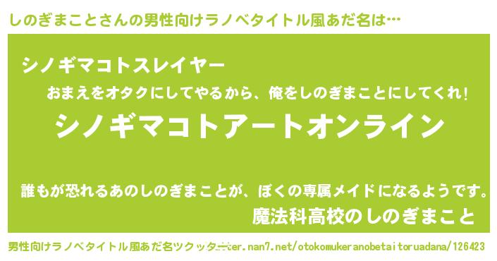 | ヒーロー風カッコイイあだ名 | 『スーパーシノギマコト』『仮面シノダー』 |