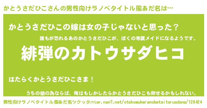 | 女子向けラノベタイトル風あだ名 | 『シンデレラかとうさだひこ家の靴箱館』 |