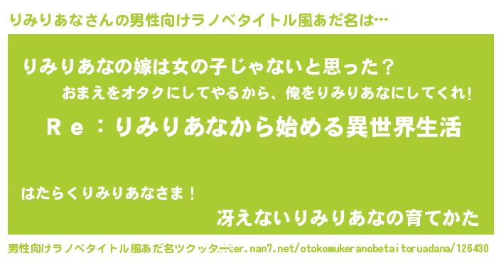 | 女子向けラノベタイトル風あだ名 | 『りみりあなストレイドッグス』 |