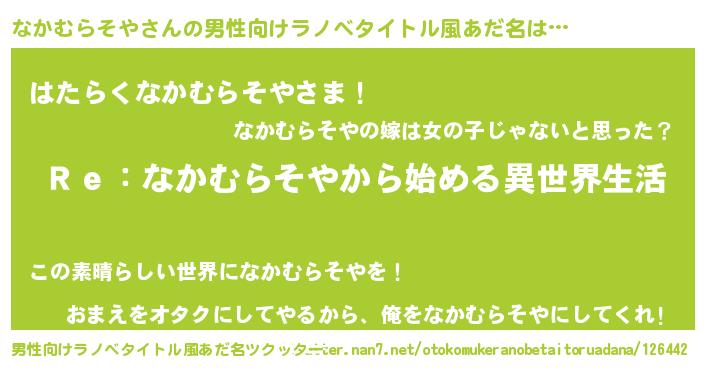 | 意味不明あだ名 | 『自称なかむらそや』 |