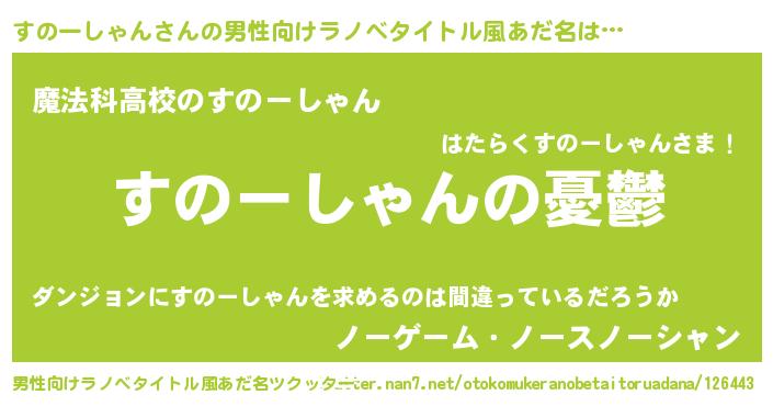 | 胡散臭い通販商品みたいなあだ名 | 『必ず成功するブレスレット…その名も「すのーしゃん」』 |