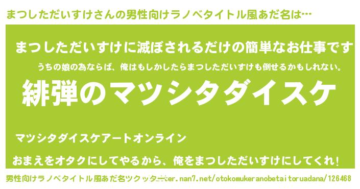 | 女子向けラノベタイトル風あだ名 | 『シンデレラまつしただいすけ家の靴箱館』 |