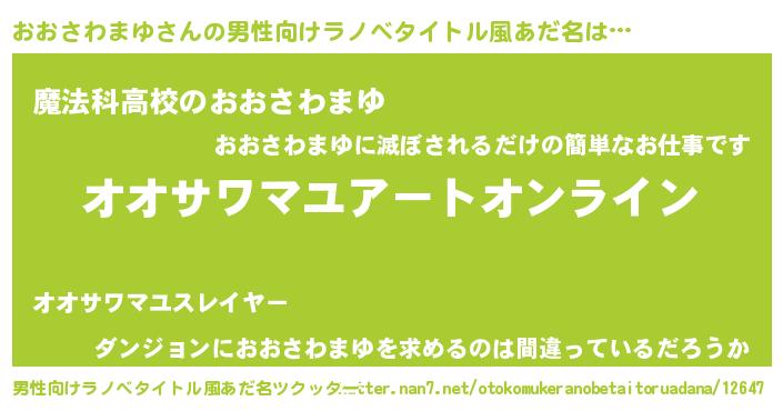 | 女子向けラノベタイトル風あだ名 | 『誰かこのおおさわまゆを説明してください! ~契約から始まるウェディング~』 |