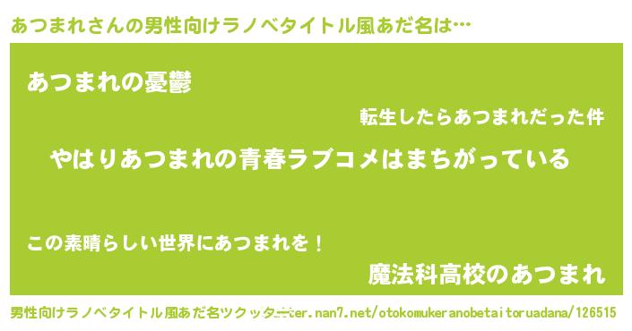 | 胡散臭い通販商品みたいなあだ名 | 『世界が平和になる高級そうな絵画…その名も「あつまれ」』 |