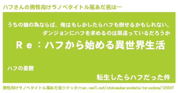 | 女子向けラノベタイトル風あだ名 | 『ハフストレイドッグス』『ハフの婚約者』 |
