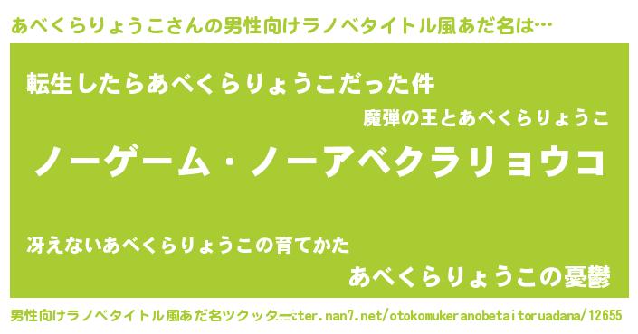 | ヒーロー風カッコイイあだ名 | 『慈愛の使者あべくらりょうこ』 |