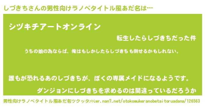 | 女子向けラノベタイトル風あだ名 | 『しづきち伯爵の花嫁』 |