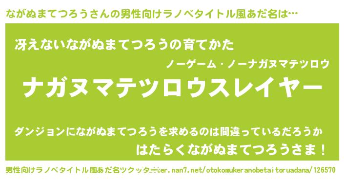 | 料理風あだ名 | 『ながぬまてつろうごはん』 |