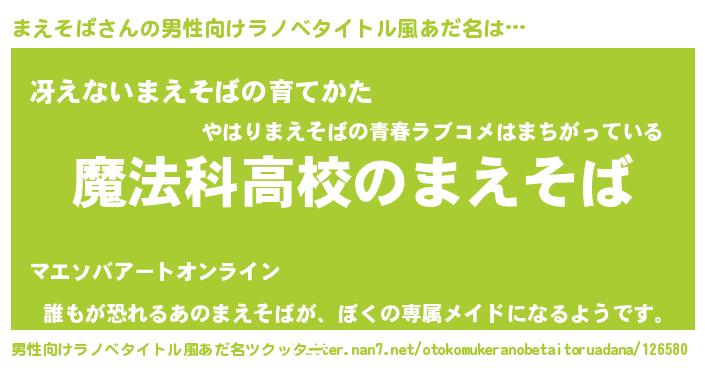 | 女子向けラノベタイトル風あだ名 | 『まえそばなんてお断りですっ。』 |