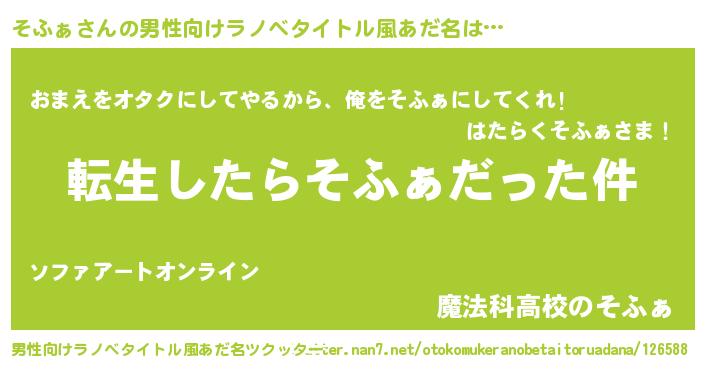 | ヒーロー風カッコイイあだ名 | 『愛の使者そふぁ』『超時空戦士ソファ』 |