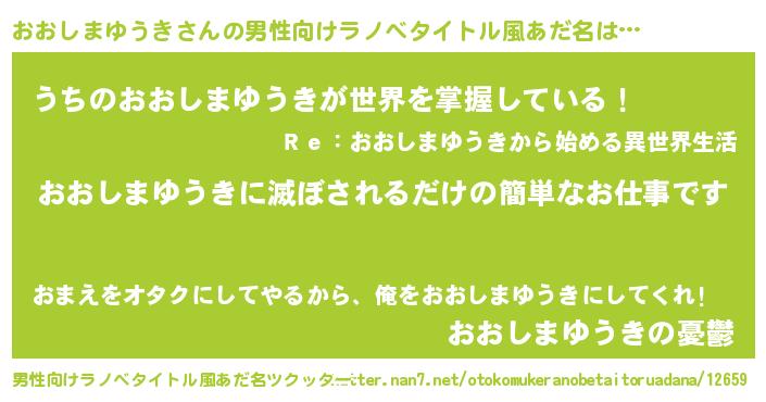 | 胡散臭い通販商品みたいなあだ名 | 『億万長者になれる水晶球…その名も「おおしまゆうき」』 |