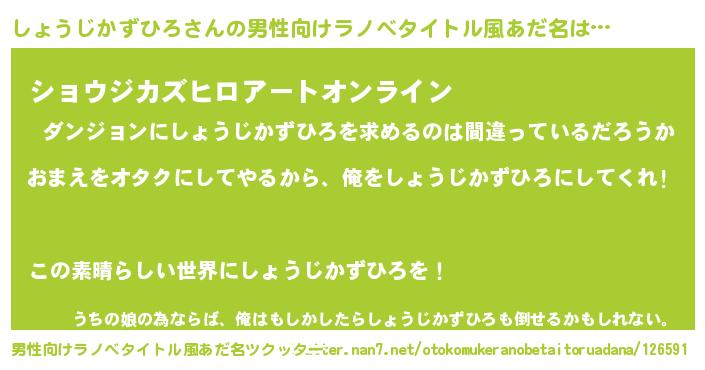| 女子向けラノベタイトル風あだ名 | 『しょうじかずひろ夫妻のなれそめ』 |