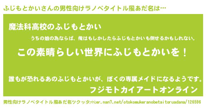 | 女子向けラノベタイトル風あだ名 | 『悪役ふじもとかいに転生したようですが、知った事ではありません』 |