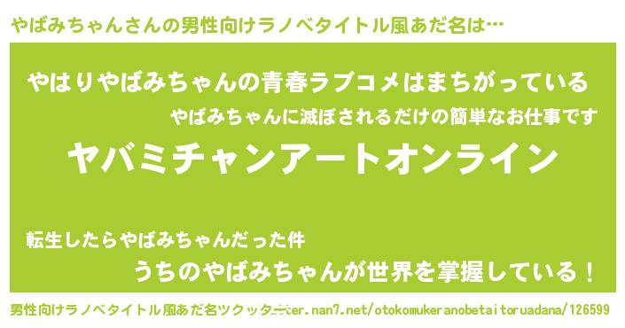 | ヒーロー風カッコイイあだ名 | 『スーパーヤバミチャン』『天弓騎士ヤバ』 |