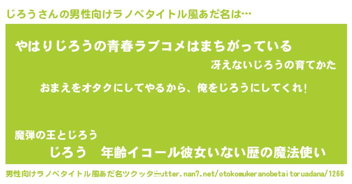 | 女子向けラノベタイトル風あだ名 | 『じろう夫妻のなれそめ』 |