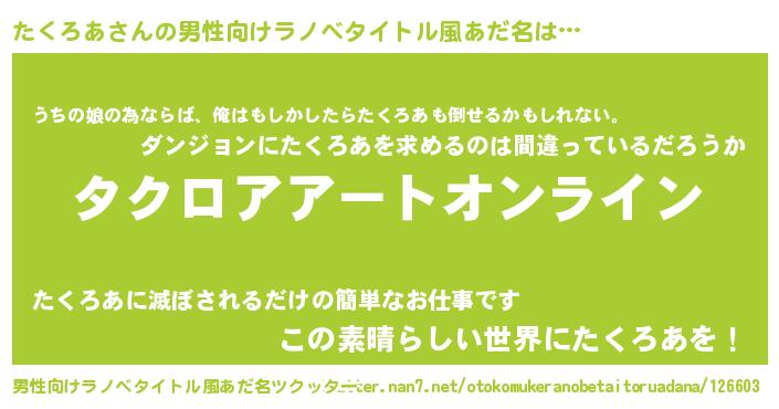 | 胡散臭い通販商品みたいなあだ名 | 『億万長者になれるブレスレット…その名も「たくろあ」』 |