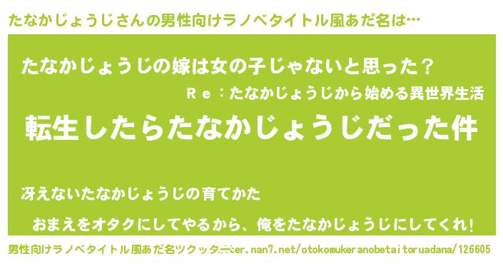 | 女子向けラノベタイトル風あだ名 | 『たなかじょうじの玉の輿計画!』 |