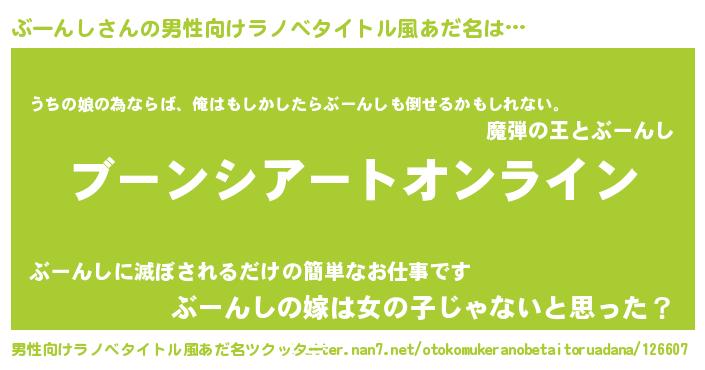 | 女子向けラノベタイトル風あだ名 | 『誰かこのぶーんしを説明してください! ~契約から始まるウェディング~』 |