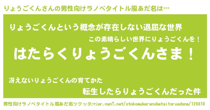 | 胡散臭い通販商品みたいなあだ名 | 『来世でも幸せになれる水素水…その名も「りょうごくん」』 |