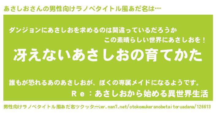 | 意味不明あだ名 | 『とにかく怪しいあさしお』 |